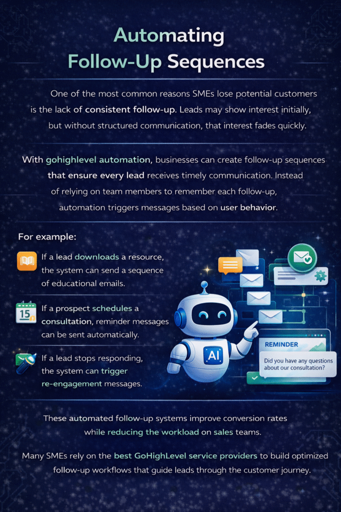Many SMEs rely on the best goHighLevel service providers to build optimized follow-up workflows that guide leads through the customer journey.
